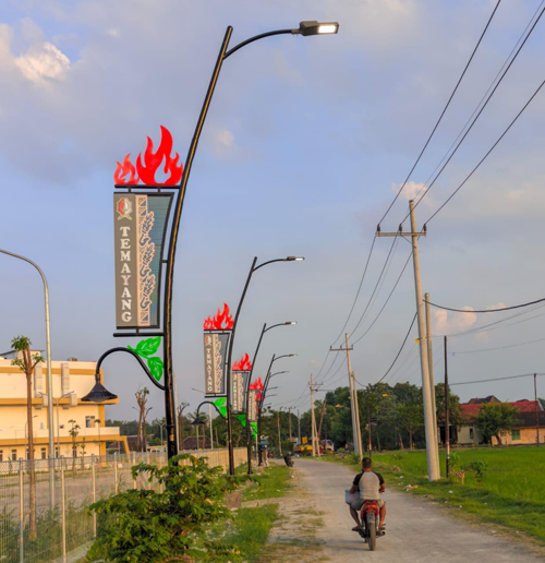 Pemasangan lampu ini merupakan langkah Pemerintah Kabupaten Bojonegoro untuk memberikan karakteristik khusus pada setiap wilayah. Ada tiga elemen identitas daerah yang diangkat dalam desain lampu tersebut, yakni Kayangan Api, Obor Sewu, dan Daun Jati.
