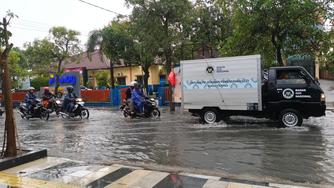 blokBojonegoro.com - Hujan deras dengan intensitas tinggi yang mengguyur Kota Bojonegoro, Senin (2/2/2026) sore, kembali memicu genangan air di ruas Jalan Pattimura. Padahal, hujan yang turun belum sampai satu jam, namun air sudah menggenangi badan jalan hingga menyerupai kolam dan mengganggu arus lalu lintas.