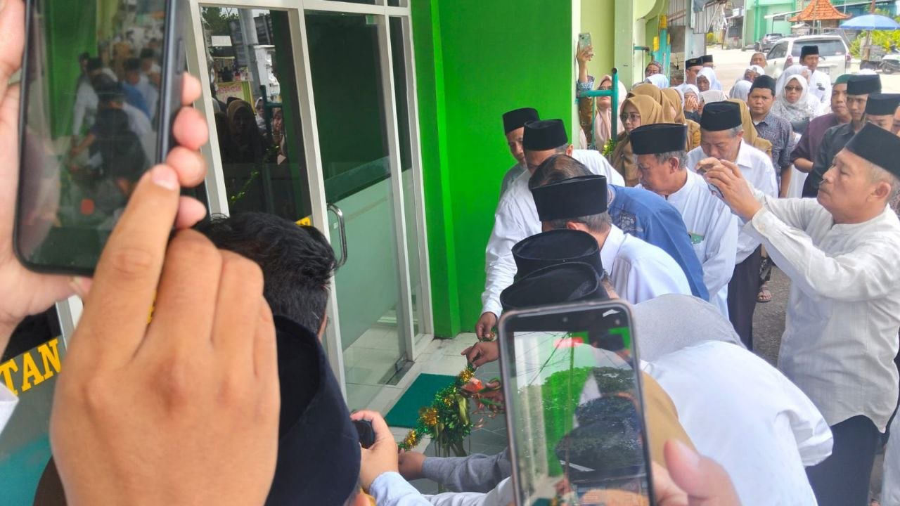 blokBojonegoro.com - Suasana launching praktik dokter rintisan Klinik Kesehatan Attanwir di kompleks Pondok Pesantren Attanwir, Talun, Kecamatan Sumberrejo, Bojonegoro, Senin (16/2/2026), dipadati keluarga besar pesantren dan tamu undangan. Mereka berkerumun di depan lokasi praktik dokter yang ditandai dengan pemotongan pita sebagai simbol dimulainya layanan kesehatan di lingkungan pondok.