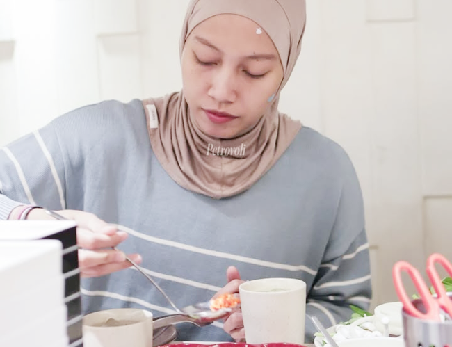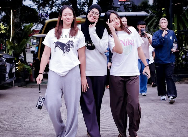 Para pemain yang berhijab seperti Bela Sabrina, Nabila Purwita, Nandita Ayu Salsabila, Siti Romadhani, Syakirah Athania Putriiska, Putri Nur Agustin, hingga setter andalan Arneta Putri Amelian berbaur dengan pemain lain yang ikut makan bersama.