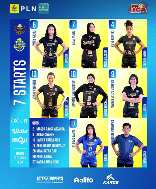 blokBojonegoro.com - Tim Jakarta Electric PLN Mobile berangkat melawan Medan Falcons di GOR Voli Sumut Sport Center, Minggu (18/1/2026) malam, sebenarnya dalam kondisi bersedih. Sebab, salah satu Outside Hitter andalannya, Ersandrina Devega Salsabila atau Caca, tengah pamitan.
