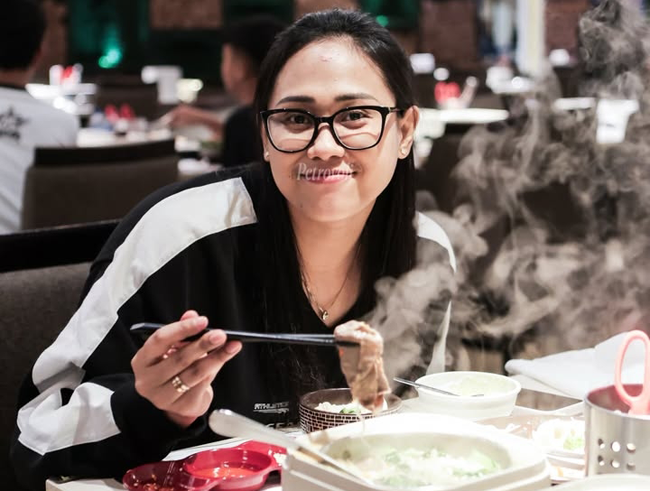 Pemain seperti Annie Mitchem, Geofanny Eka hingga Ajeng Nur Cahaya juga menikmati makan yang sama dengan penuh canda tawa. [mad]