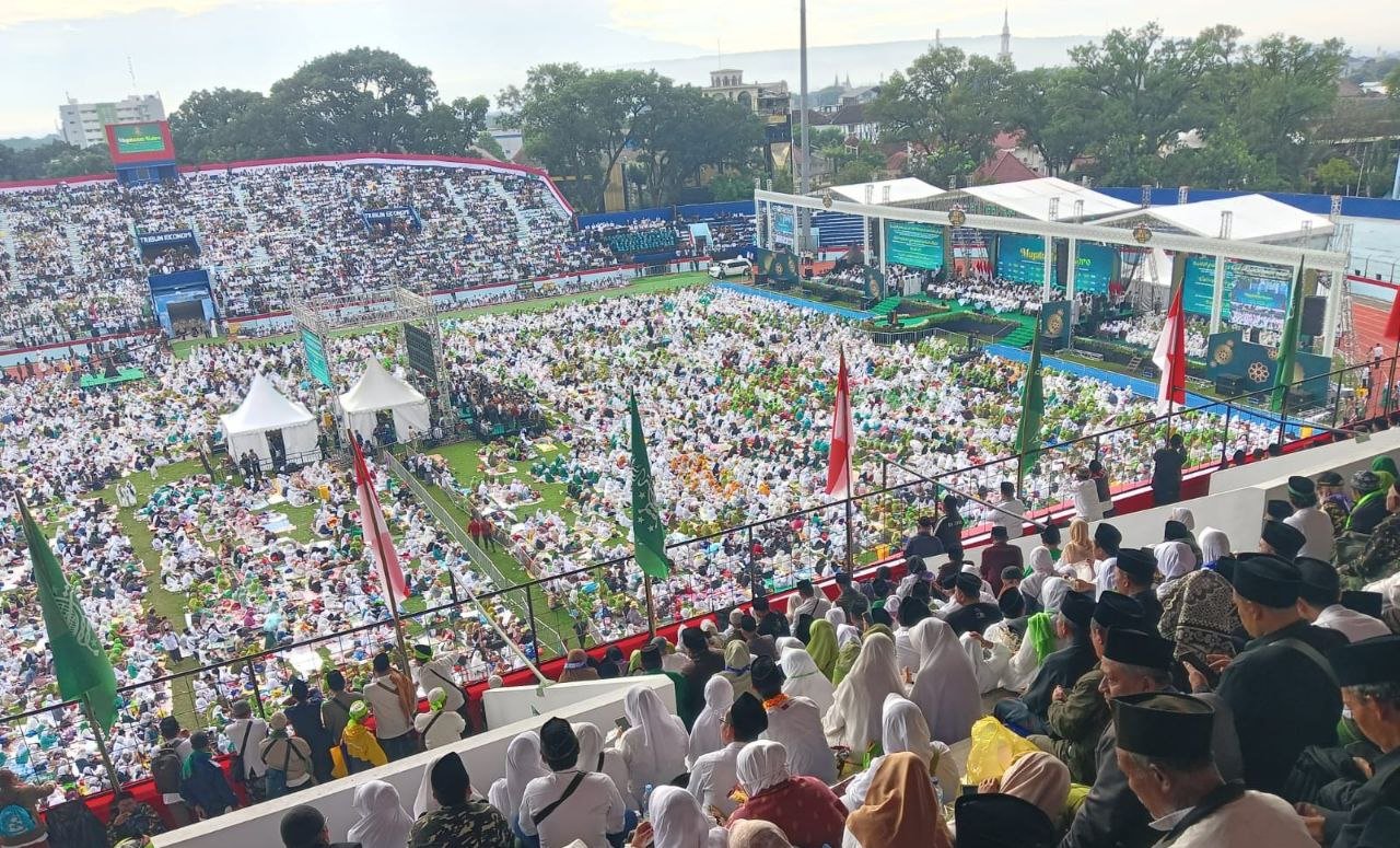 Sejak dini hari jamaah terus berdatangan, bahkan sebagian harus mengikuti acara dari luar stadion karena keterbatasan kapasitas. Panitia menyambut antusias kehadiran jamaah dari berbagai daerah dalam momentum bersejarah tersebut.