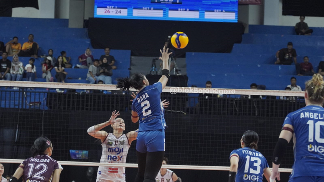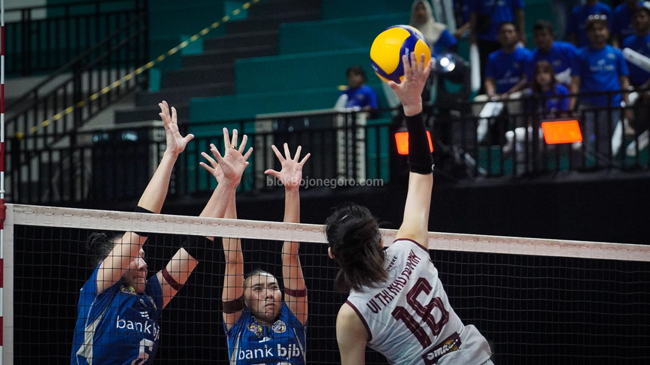 Berlaga di GOR Utama Bojonegoro, Jawa Timur, BJB Tandamata sempat kecolongan satu set, sebelum akhirnya mengakhiri perlawanan Medan Falcons 3-1 (24-26, 25-19, 25-18, 25-18). Giulia Angelina jadi bintangnya. Spike keras dan tajam mengalirkan poin untuk BJB Tandamata. Dari catatan, ia mengumpulkan 25 poin.