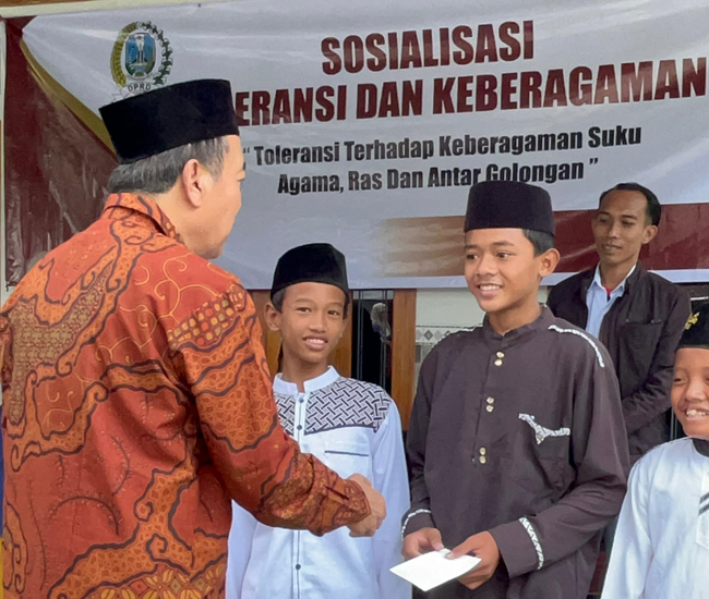 blokBojonegoro.com - Selain menggelar "Sosialisasi Tolerasi dan Keberagaman Suku, Agama, Ras dan Antar golongan", H. Budiono, S.Sos., M.AP, anggota dewan dari Dapil XII Bojonegoro-Tuban, juga sekaligus melaksanakan santunan yatim.